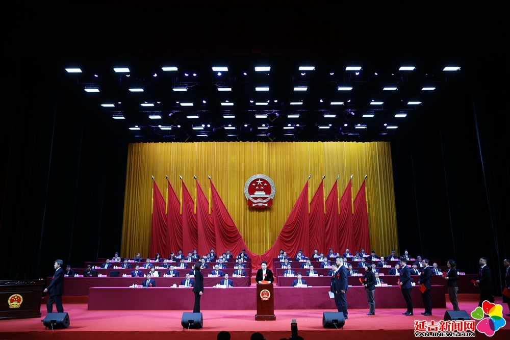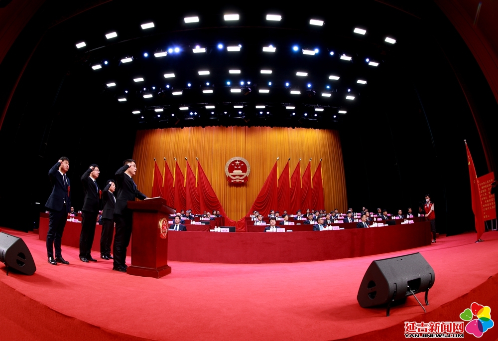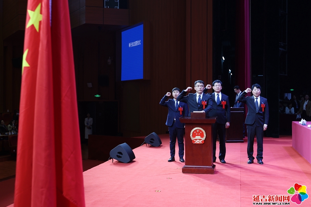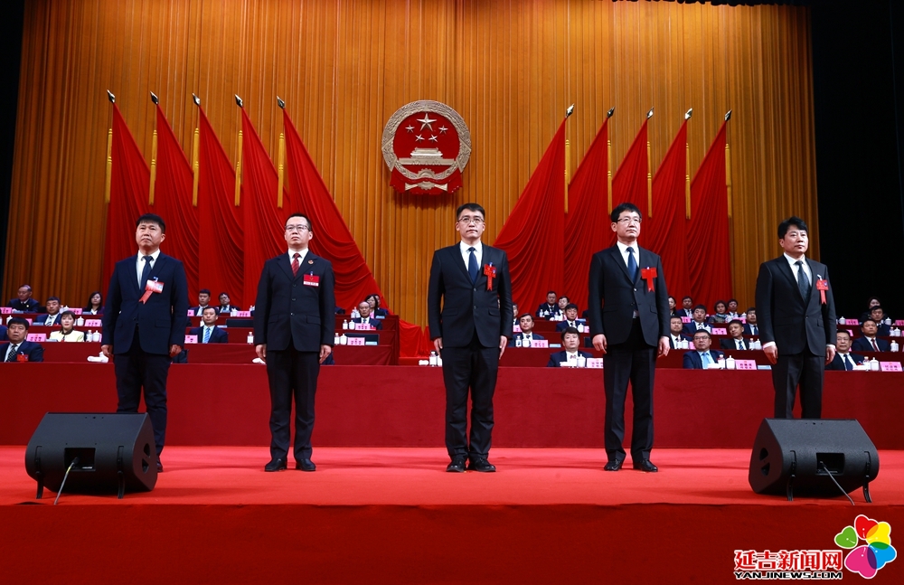 在代表们热烈的掌声中,新当选的市十九届人大常委会副主任、委员,市监察委员会主任,市人民检察院检察长与全体代表见面,并进行宪法宣誓(市人民检察院检察长待州人大常委会批准后,另行宣誓)。