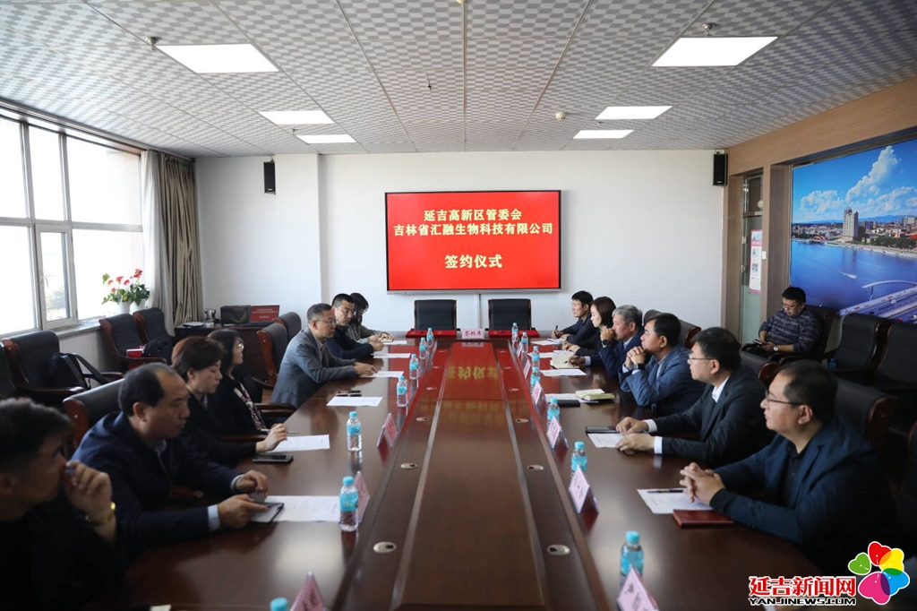 延吉高新区管委会主任苏志远与汇融生物董事长邵兵进行签约。