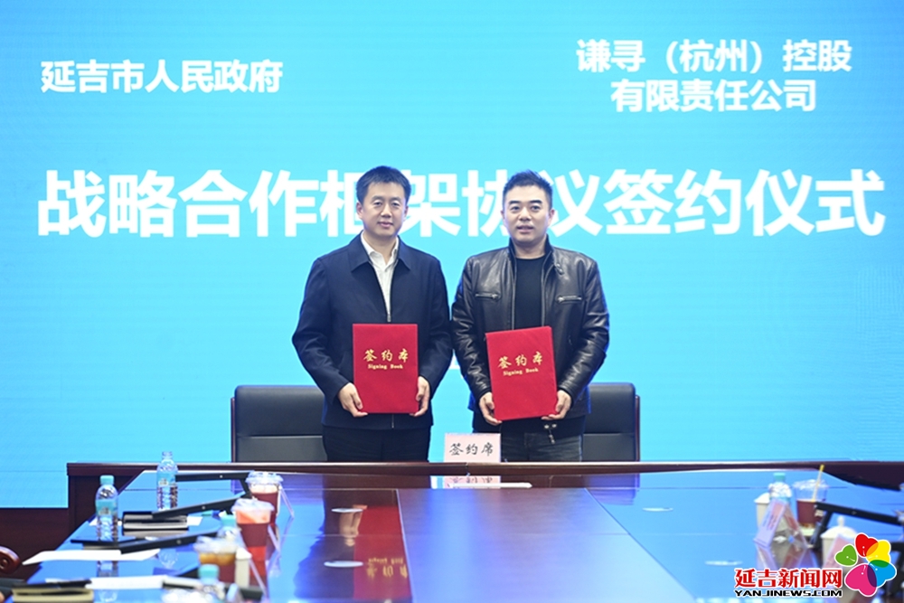延吉市委副书记、代市长金峰,市委常委、副市长张学斌,谦寻(杭州)控股有限责任公司董事长董海锋出席签约仪式。