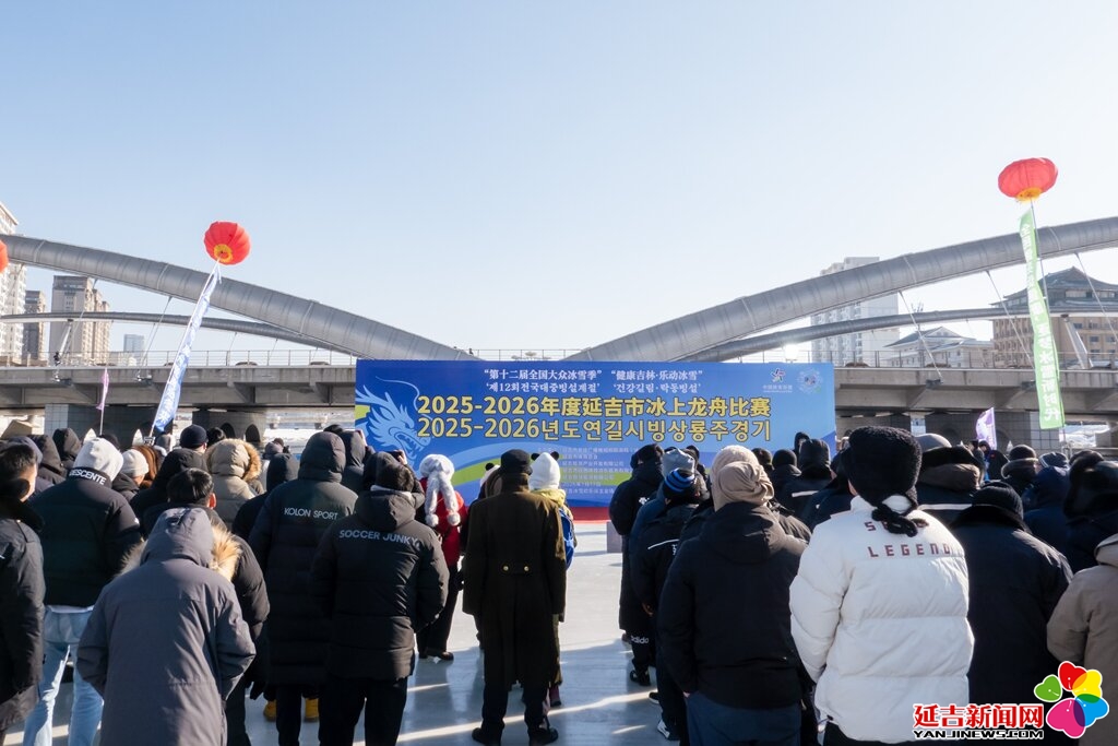 本次比赛由延吉市文化广播电视和旅游局(体育局)主办,依托延吉得天独厚的冰雪资源,创新融合传统龙舟文化与北方冰上运动特色。赛道选址于布尔哈通河厚实的冰封河面,单条赛道宽度达8米,全程标识清晰醒目、导向明确。