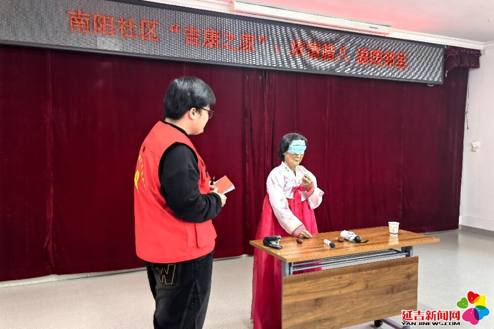 文艺表演间隙,蒙眼识物、倒扣纸杯两大趣味小游戏精彩上演,居民们踊跃参与,现场欢声笑语不断。活动最后,备受期待的品美食环节正式开启。社区工作人员精心熬煮腊八粥,并准备了朝鲜族特色美食,居民们围坐一堂,品浓香甜粥,享邻里欢乐。