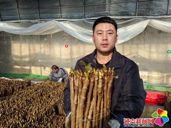 “这是刺嫩芽,学名刺龙芽,被誉为‘山菜之王’,不仅口感脆嫩清香,还富含皂甙、黄酮等营养成分,营养价值比普通蔬菜高出许多。”31岁的基地负责人于泳航戴着厚实的橡胶手套,小心翼翼地拨开一簇刺嫩芽芽胞向记者介绍。“以前我在汪清县罗子沟镇养藏香猪,后来转行到一家企业上班,边工作边琢磨自主创业,就瞄准了绿色产业。”于泳航擦了擦额头的汗珠,眼里闪着亮光,“我养猪那会儿,春天经常上山采刺嫩芽吃,咱东北人冬天就馋这口山野菜,但野生的刺嫩芽只有春天才有,反季种植肯定有市场。”去年8月,于泳航联合3名志同道合的年轻人,专程前往沈阳新民市的刺嫩芽种植企业学习技术,从枝条选种、水质调控到温度管理,他们把每个细节都记在笔记本上、印到脑海里。“反季水培看着简单,其实学问大着呢,水温要控制在8-12℃,室温得稳定在18-22℃,还要三天一通风,五天一换水。”于泳航指着水培池介绍,去年11月从辽宁采购来10万杆纯野生刺嫩芽杆,经过分级筛选后,于12月11日正式入池培育,“这些刺嫩芽杆都是精挑细选的,每根长度60厘米左右,芽胞完整饱满,只有这样才能长出好嫩芽。”