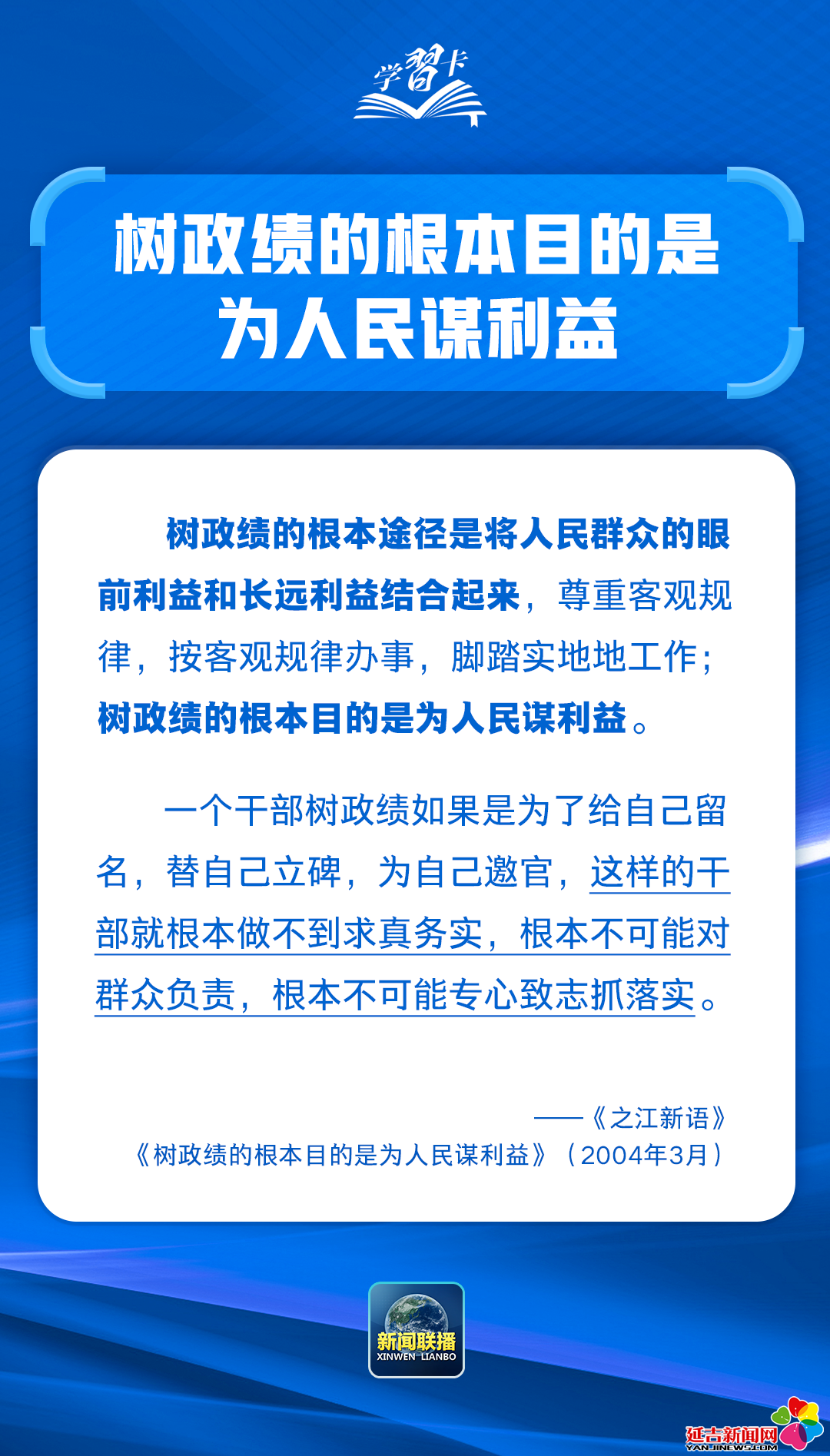 “政绩观问题是一个根本性问题,关乎立党为公、执政为民。”党的十八大以来,习近平总书记反复强调要树立和践行正确政绩观,近期又在多次重要讲话中特别加以强调,为开展学习教育指明了方向、提供了重要遵循。
