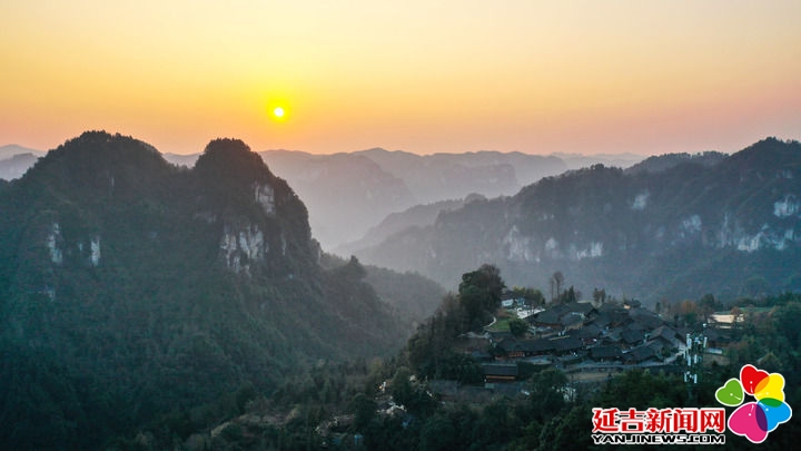 这是2025年1月1日在湖南省花垣县十八洞村拍摄的日出景象(无人机照片)。新华社发(龙恩泽摄)