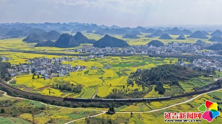 2026年2月26日,赏花旅游专列在云南省曲靖市罗平县油菜花海中行驶(无人机照片)。新华社发(杨紫轩摄)