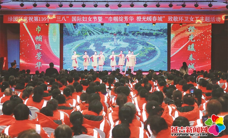 在“三八”国际妇女节到来之际,长春市绿园区妇联、区城管局联合举办“巾帼绽芳华 橙光暖春城”致敬环卫女工主题活动。770名一线环卫女工欢聚一堂,通过文艺展演、互动分享等形式,展现新时代女性劳动者爱岗敬业、积极向上的精神风貌。(吉林日报记者 李姣月 摄)