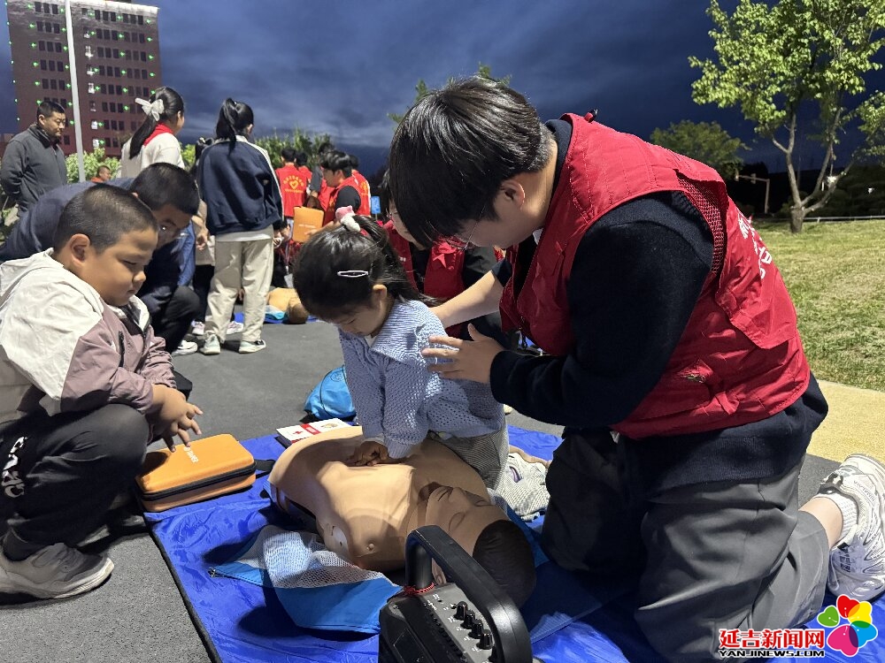 9月19日晚,民泰社区应急救护志愿服务队联合延边大学医学院青年志愿者协会,在延吉市阿里郎广场开展公益应急救护培训活动,面向广大市民普及基础急救知识与技能,增强公众应对突发事件的处置能力。