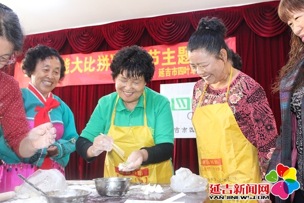 杨丽珍组织老年人集体做美食活动