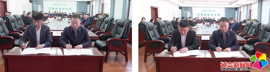 公司党委书记、管委会主任杨喜强与基层林场负责人代表签订了《2025年度森林防火工作责任状》。