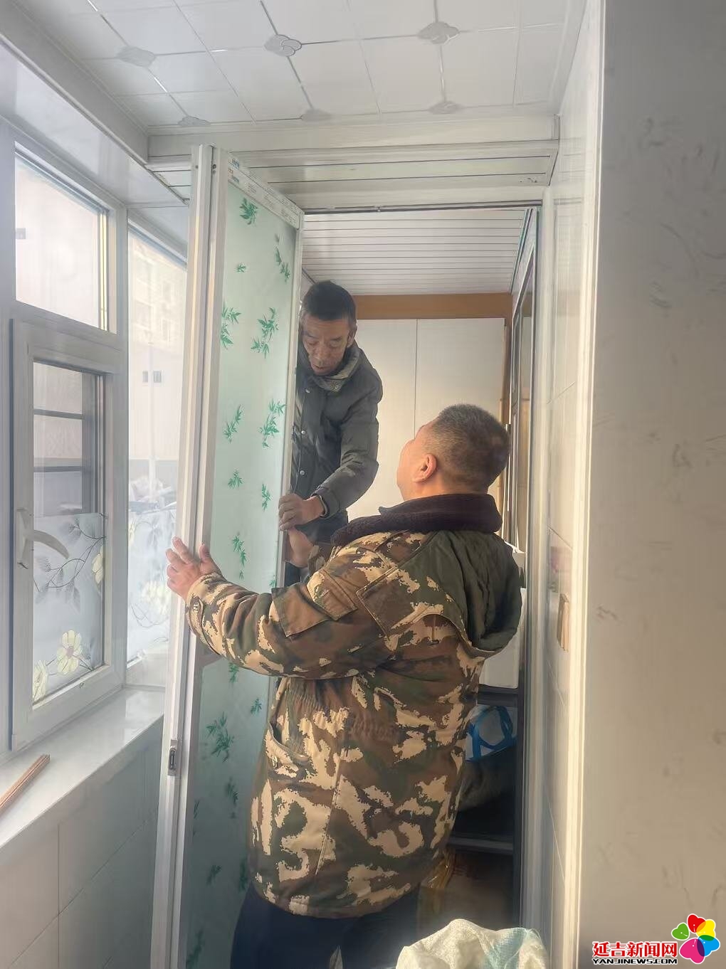 过程中,众人分工协作、默契配合,大家扶着门体稳住重心,清理轨道杂物、打磨锈迹,调整合页位置、拧紧松动螺丝。大娘在一旁不住道谢:“你们真是及时雨,儿女不在身边,多亏了邻居们热心帮忙,还麻烦社区同志跑一趟!”经过近一个小时的忙碌,变形的拉门恢复顺滑,开关自如。