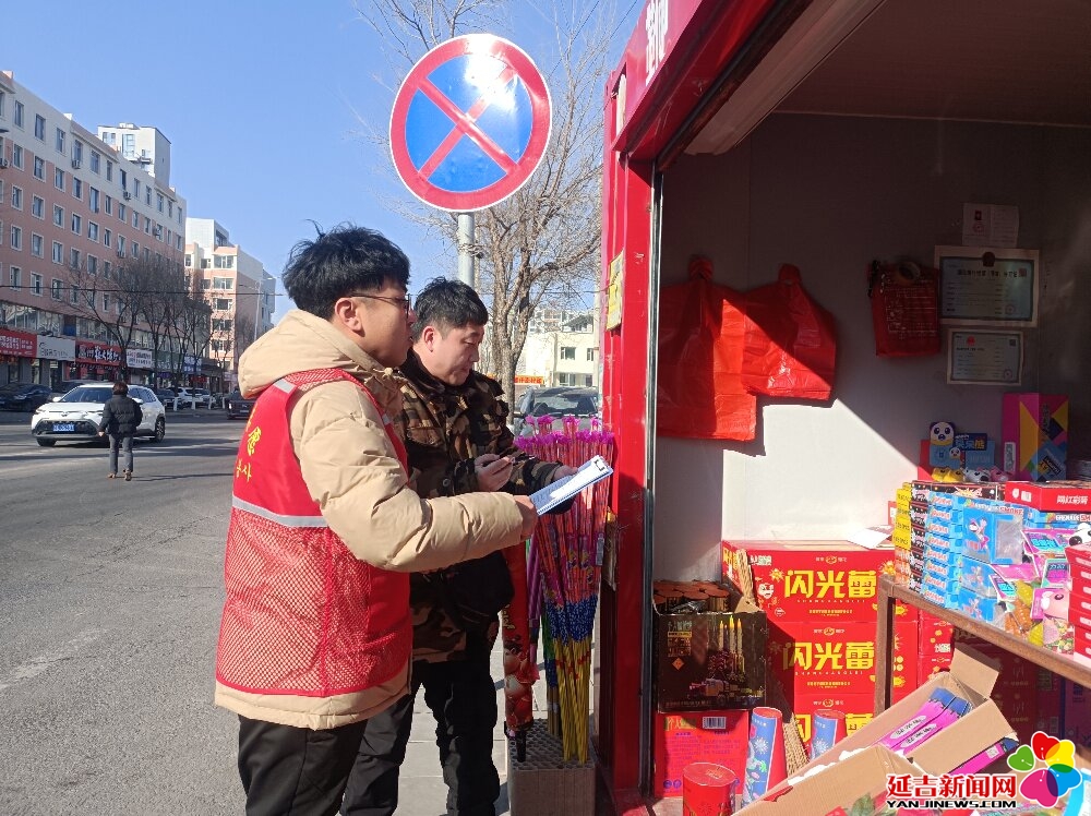 在烟花爆竹经营环节,街道以“全覆盖、零容忍、严整改”为工作准则,组织工作人员对辖区内烟花爆竹临时摊位开展安全生产专项检查,紧扣经营资质、储存规范、消防设施、警示标识等安全生产关键环节,层层压实经营主体安全责任,做到检查不留死角、不漏一处,坚决守住安全底线。