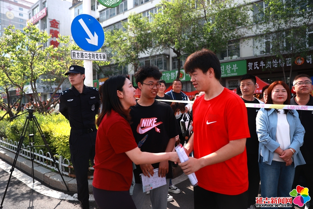 记者在延边二中考点看到,上午8时,考点周围拉起了层层警戒线,公安、交警在考点外维持秩序、疏导交通,全力为高考保驾护航。在家长们的殷切目光中,在老师们的衷心期盼下,在志愿者们的加油鼓励中,考生们陆续进场。