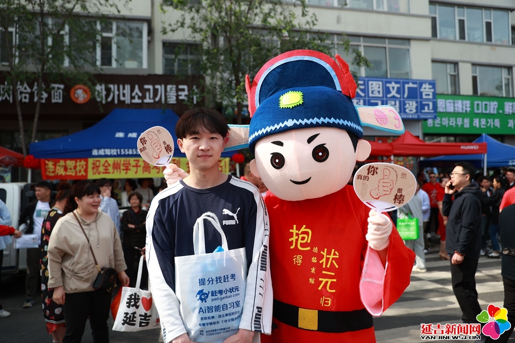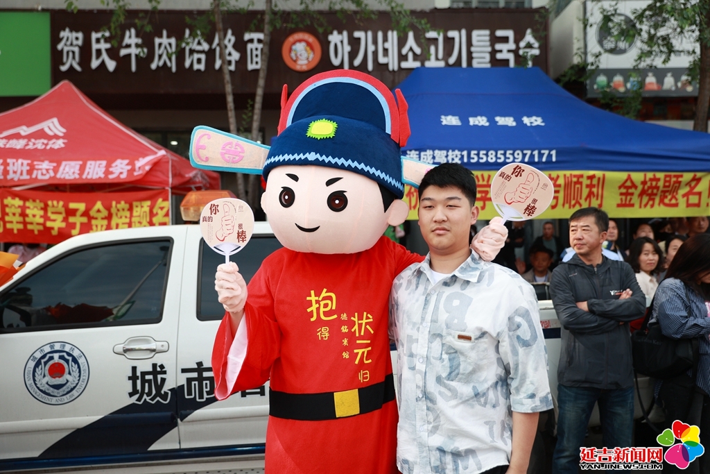 志愿者扮成状元为考生加油