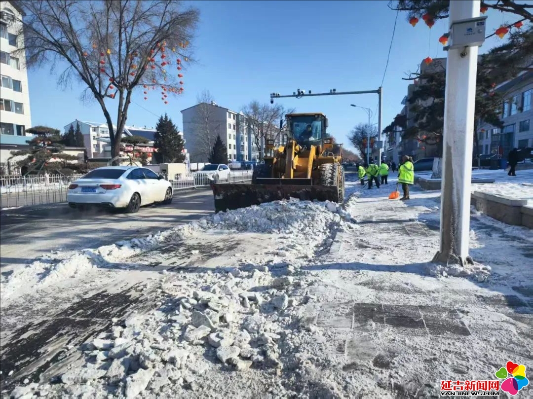 清雪行动高效迅速,确保道路畅通。在清雪工作中,延吉城管迅速组织清雪突击队和保洁员对市区的主干道及游园桥面进行清理。降雪后,继续对全市的30条主次马路进行精细化清理,确保道路畅通无阻。春节期间共出动清雪车辆67台、110余次,撒布机8台、40余次,清运积雪1200余立方。
