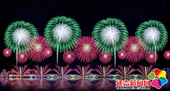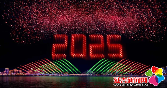 无人机表演结束后,在阿里郎广场对面河岸,焰火晚会精彩上演,共有繁荣延吉喜迎新、绿美延吉如诗画、青年延吉焕新颜、智慧延吉谱华章、幸福延吉再扬帆五个篇章,整场焰火燃放25分钟,在璀璨夺目的焰火映照下,预示着又将开启元气满满的新一年。