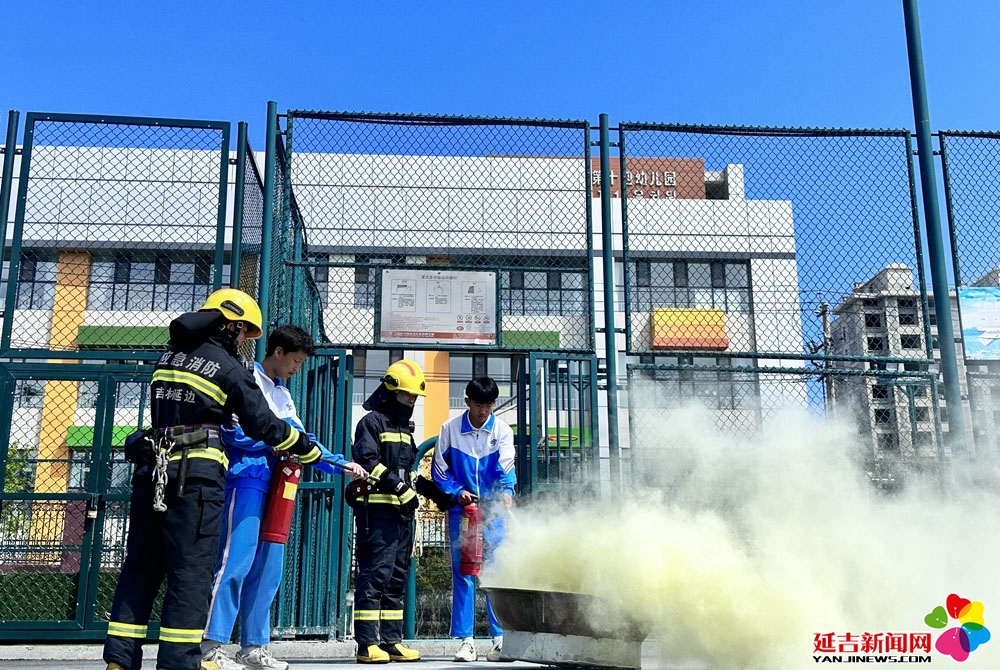 在演练结束后,消防人员通过互动体验等方式,详细介绍了灭火基本方法、火场逃生技能,并手把手指导学生怎样使用灭火器。