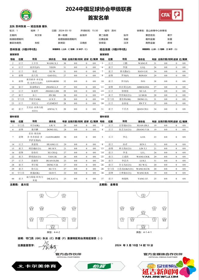 从比赛开始,新外援的表现让人充满期待。17分左右,罗南的动作吸引起东吴球员的注意,接球的伊沃在东吴队两名球员瞄准球扑过来前,打出了精彩射门,取得延边龙鼎队新赛季首粒进球。上半场结束在即,44分左右,苏州东吴队的11号选手张庆哲接到9号外援的传球,射门并扳平比分。