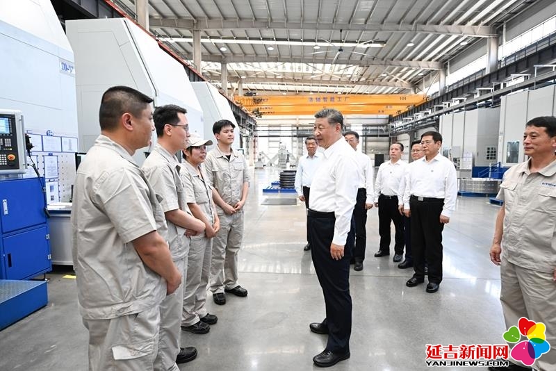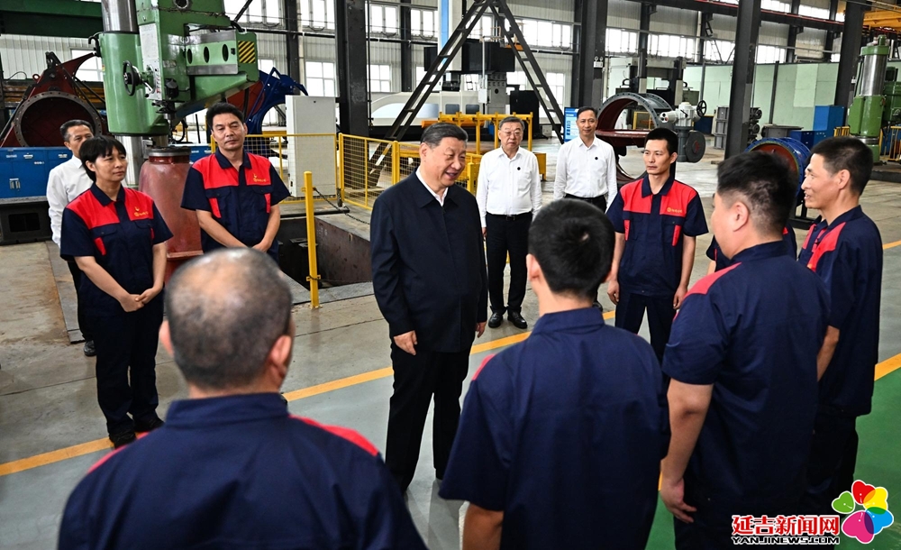 △2025年7月7日,习近平总书记在山西阳泉阀门股份有限公司考察时,同企业员工亲切交流。