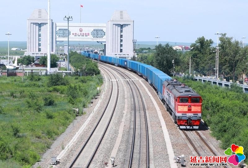 △2025年7月24日,一列满载货物的回程中欧班列通过国门驶入中国铁路哈尔滨局集团有限公司满洲里站。