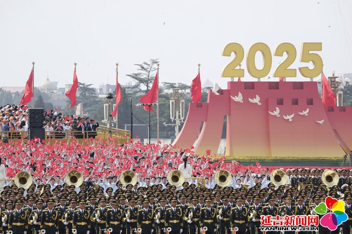 2025年9月3日,纪念中国人民抗日战争暨世界反法西斯战争胜利80周年大会在北京隆重举行。这是中国人民解放军联合军乐团和合唱团。新华社记者 杨磊 摄