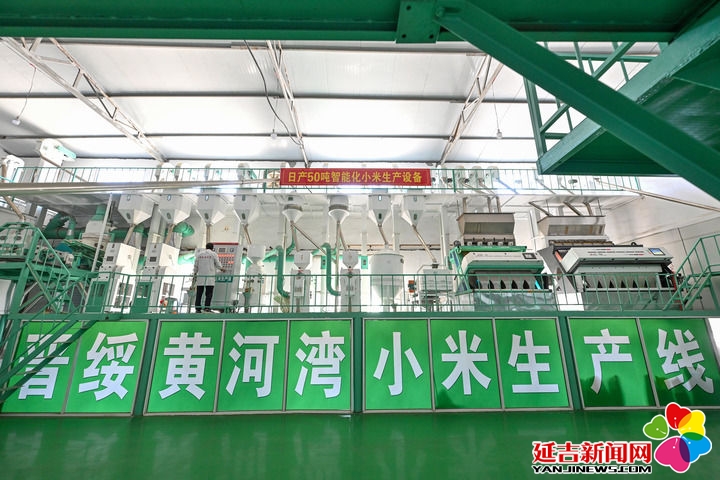 2025年7月1日拍摄的山西省吕梁市兴县晋绥黄河湾农业开发有限公司的小米生产线。抗战时期,地处晋西北地区的兴县和静乐县是晋绥抗日根据地的一部分。新华社记者 李鑫 摄