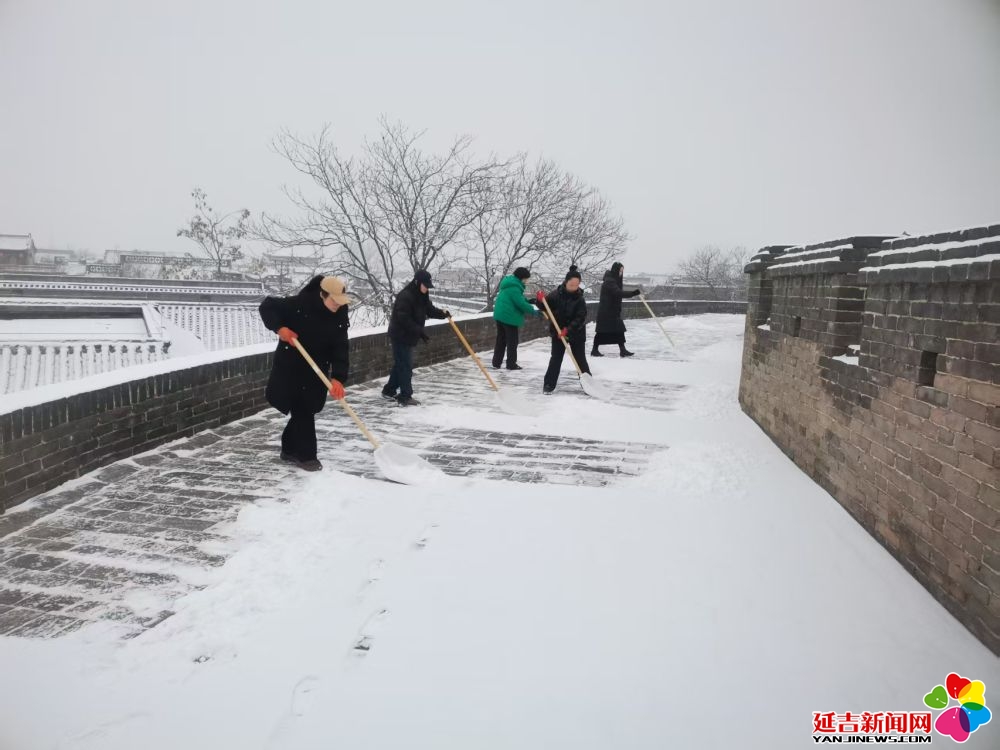 清晨6点,平遥古城的城墙上已是一番忙碌景象。全程6公里多的环线上,工作人员手持扫帚、铲子,正细心地清扫青砖上的积雪。