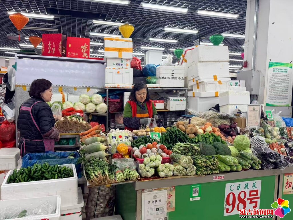 蔬菜摊前,新鲜的青菜、翠绿的黄瓜、鲜嫩的韭菜等琳琅满目,新鲜水灵、价格平稳,成为群众采购的重点,摊主一边快速称重打包,一边热情地与顾客寒暄。“年前这几天是最忙的时候,天不亮就去进货,保证蔬菜新鲜水灵,像白菜、萝卜、芹菜这些家常菜销量都特别好。”蔬菜摊摊主李今花脸上乐开了花。