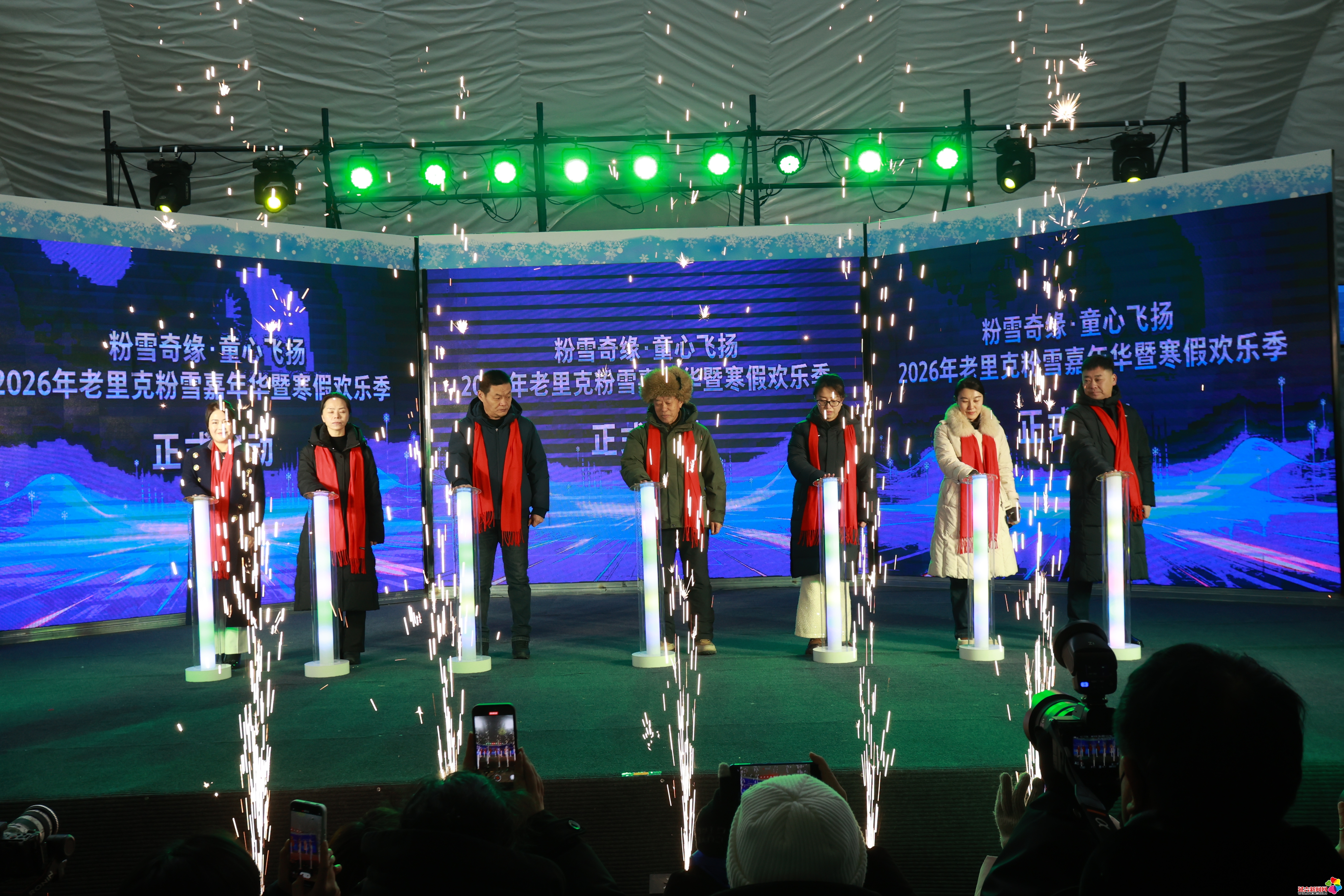 延吉新闻网1月17日讯(记者 李军广)冰雪为媒,文旅赋能。1月17日,“粉雪奇缘·童心飞扬——2026年老里克粉雪嘉年华暨寒假欢乐季”活动在和龙市老里克景区正式拉开帷幕。本次活动深入践行“冰天雪地也是金山银山”重要指示精神,落实“百万青少年上冰雪”部署要求,以优质粉雪资源与朝鲜族特色文化为核心,打造“冰雪+”融合发展盛会,为寒假黄金消费期注入文旅新动能。 中共和龙市委常委、宣传部部长吕良莹,和龙市人民政府副市长姚卫等领导嘉宾,与省州级媒体、自媒体达人、旅行社代表、摄影爱好者及“燃冬少年”研学学生、亲子家庭、趣味运动会代表等共同见证开幕时刻。